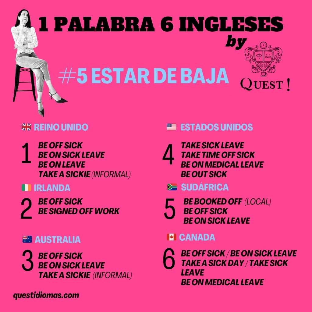 En la sección 1 palabra, 6 ingleses de hoy, vamos con otro de los términos que más preguntan en clase: ¿Cómo se dice “estar de baja” en inglés?